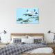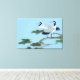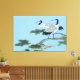 Den här röda kronan har två kranar i träd med blå himmel på botten. Varje kran har ett vitt bröst och blåa grått-fjädrar på träd gren med grönt gräs nål och en lätt blå himmel. Detta är ett vackert foto på denna Wrapped Canva