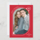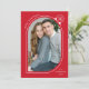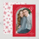 Skicka helgdag till familj och vänner med ett unikt helgdag av Late Bloom Paperie! Det moderna helgdag visningar ditt foto inuti ett rött och vitt kurvfoto ram som är förskönat med en vit snöflinga. Anpassa framsidan av fotojulkortet genom att lägga till en hälsning med kurvtext stil, namn och år. Kortet återgår till visningen med en röd snöflinga mönster.