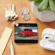 Classic red pickup truck customized parked in front of body shop at Florida, USA.