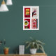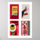 Red Czechoslovak Matchbox Labels Grid Print Poster