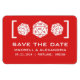 D20 Dice Gamer Spara datum magneter i mörk rött är en perfekt för det nervösa par som föll i kärlek över ett gemensamt intresse för att spela spel och skulle vilja tillkännage att deras bröllop visade denna del av sina personligheter. Den här oslagbara designen har en enkel och minimalistisk trio av tjugosidig död. Enkel att anpassa, lägg bara till din bröllop-information i den text fält tillhandahåller. Klicka på Anpassa om du vill söka efter fler anpassningsalternativ.