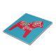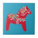 Utformningen av Red Dala Horse Tile på den här plattan kommer från en röd dala-häst som är karvad och målad av Julia Persson-Morrill