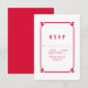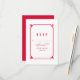 Ett enkelt och minimalistiskt dekokort för Chic med ett modernt rött dekokonst-dekan-gräns. Det här klassiska svarskortet och svarskortet på eleganten är enkelt att anpassa med din bröllop-information. Hitta fler anpassningsalternativ genom att klicka på Anpassa.