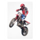 MX-entusiaster kommer att kärlek detta fotografi av en röd motorcykel under en tävling. Underbar för idrottens tävlingsskyttar och vaktmästare. Motocross älskare förenar sig!