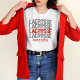 Med fet brev anges ord "LACROSSE" med "O" ersatt med ett basket. Den något bedrövliga utformningen ger en underbar personlig till en spelare, en tränare, ett team eller fläkt. Finns i rött, orange, gult, lila, grönt, blått, grått, svart, skoglig grönt, maron, bränd orange, guld och pulverblått. Matchande produkter är tillgängliga.