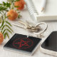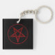 Röd, inverterad, texturerad pentagram i cirkel, på svart bakgrund. Oockult-symbol. 666