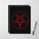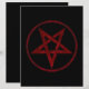 Röd, inverterad, texturerad pentagram i cirkel, på svart bakgrund. Oockult-symbol. 666