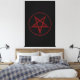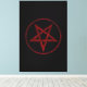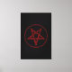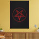 Röd, inverterad, texturerad pentagram i cirkel, på svart bakgrund. Oockult-symbol. 666