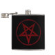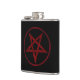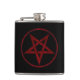 Röd, inverterad, texturerad pentagram i cirkel, på svart bakgrund. Oockult-symbol. 666