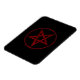 Röd, inverterad, texturerad pentagram i cirkel, på svart bakgrund. Oockult-symbol. 666
