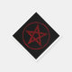 Röd, inverterad, texturerad pentagram i cirkel, på svart bakgrund. Oockult-symbol. 666