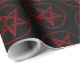 Röd, inverterad, texturerad pentagram i cirkel, på svart bakgrund. Oockult-symbol. 666