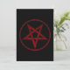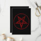 Röd, inverterad, texturerad pentagram i cirkel, på svart bakgrund. Oockult-symbol. 666