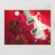 Röd elektrisk gitarr med julklamprydnadsföremål. Begreppet bild för julmusik/musikhändelse i julhelg eller musikinstrument för Julklapp. © och ® Bigstock® - Med förbehåll för alla Höger.