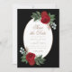 Vackra vattenfärgsprejer med blommigt med pulserande rödpeonier, lush grey, eukalyptus och baby andedräkt... omger ett ovalt ram med dina uppgifter om datum i guld manustypografi. Riken och gröntar i blommigtarna ställer in bakgrunden till eleganten svart, vitt och guld. Lägg till egna detaljer genom att följa länken "Anpassa". Om du vill ha hjälp, eller matcha delar, tveka inte att nå ut till mig via ett meddelande här på Zazzle eller via e-post @ susanmingaydesigns@gmail.com
