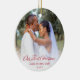 Red Elegant Script Photo Vår första jul Julgransprydnad Keramik