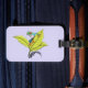 En söt, röd, träd groda sitter på tre löv mot bakgrund av lätt lila.