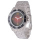 En klassisk rostfri vattentålig klocka till 100 meter. Ett djupt rött urtavla med stora moderna siffror i bränt orange är mycket funktionellt för dina behov av dykning eller som en militär stil klocka .
