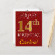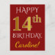 Red, Faux Guld 14:e födelsedagen + eget namn Vykort