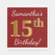Den här enkla pappra napkin-designen innehåller ett meddelande som "Samantas 15:e födelsedag!", där "15:e" har ett faux-guld-liknande utseende på röd färgad. Namn kan vara personlig. Den skulle kunna användas i en födelsedagsfest till någon som firar sin femtonde födelsedag. [~Z0000080]