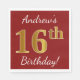 Den här enkla pappra napkin-designen innehåller ett meddelande som "Andrew's 16:e födelsedag!", där "16:e" har ett faux-guld-liknande utseende på en röd färgad. Namn kan vara personlig. Den skulle kunna användas i en födelsedagsfest till någon som firar sin sextonde födelsedag. [~Z0000080]