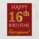 Red, Faux Guld 16:e födelsedagen + eget namn Vykort