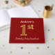 Red, Faux Guld 1:a födelsedag Party + eget namn Gästböcker
