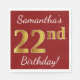 Red, Faux Guld 22:a födelsedagen + eget namn Pappersservett