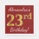 Den här enkla pappra napkin-designen innehåller ett meddelande som "Alexandra's 23:e födelsedag!", med "23:e" utseendet faux guld-like, på röd färgad. Namn kan anpassas. Den skulle kunna användas i en födelsedagsfest till någon som firar sin tjugotredje födelsedag. [~Z0000080]