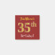 Den här enkla anteckningsdesignen innehåller ett meddelande som "FirstName's 35e Birthday!", där "35en" har ett faux-/imitationsliknande guld-liknande färgutseende på en röd färgad-bakgrund. Namn kan vara personlig. Sådana anteckningar skulle kanske kunna användas som dekorationer i en födelsedagsfest till någon som firar sin trettiofemte födelsedag. [~Z0000173]