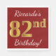 Den här enkla pappra napkin-designen innehåller ett meddelande som "Riccardos 82:a födelsedag!", där "82:a" har ett faux-guld-liknande utseende på en röd färgad. Namn kan vara personlig. Den skulle kunna användas i en födelsedagsfest till någon som firar sin åttio andra födelsedag. [~Z0000080]