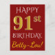 Red, Faux Guld 91:a födelsedagen + eget namn Vykort