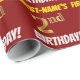 Den här pappra designen innehåller ett meddelande som "FIRST-NAMN's 2nd BIRTHDAY!", där "2nd" har ett utseende som liknar guld och liknar färg och med namn och "BIRTHDAY" i ett roligt, fet stil. Namn kan vara personlig, och bakgrunden är färgad röd. Att packa pappert som detta kan kanske användas när man fyller på födelsedagskalkyl som ges till någon i firande på deras andra födelsedag. [~Z0000204]