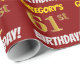 Den här pappra designen innehåller ett meddelande som "GREGORY'S 61:a BIRTHDAY!", där "61:a" har utseendet faux/imitation guld-like färg och med namn och "BIRTHDAY" i ett roligt, fet stil. Namn kan vara personlig, och bakgrunden är färgad röd. Att packa pappert som detta skulle kanske kunna användas när man fyller på födelsedagskalkyl som ges till någon i firande på deras sextio första födelsedag. [~Z0000204]