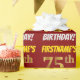 Den här pappra designen innehåller ett meddelande som "FIRSTNAME's 75:e BIRTHDAY!", där "75:e" har ett utseende som påminner om guld och liknar färg och med namn och "BIRTHDAY" i ett roligt, fet stil. Namn är anpassade, och bakgrunden är färgad röd. Att packa pappert som detta skulle kanske kunna användas när man fyller på födelsedagskalkyl som ges till någon i firande på deras sjuttiofemårsdag. [~Z0000204]