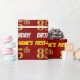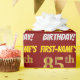 Den här pappra designen innehåller ett meddelande som "FIRST-NAMN's 85:e BIRTHDAY!", där "85:e" har ett utseende som liknar guld och liknar färg, och med namn och "BIRTHDAY" i ett roligt, fet stil. Namn är anpassade, och bakgrunden är färgad röd. Att packa pappert som detta skulle kanske kunna användas när man fyller på födelsedagskalkyl som ges till någon i firande på deras åttiofemte födelsedag. [~Z0000204]