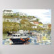 En lokal fiskebåt, sport röda fäder vid sin hamnsida, ljuger vid sin förtöjning i Mevagissey Harbour. Från Christines ursprungliga vattenfärg. (Flera av Christine's ursprungliga Mevagissey-målningar säljs vid Cofro Cornish Art Coffee House, 14 Fore St., Mevagissey)