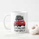 Lägg till ett tankstreck med vintage och italiensk fläck i din dagliga kafferrutin med det här vackra mugg med en röd Fiat-bil. Denna lekande illustration visar den ikoniska Fiat, komplett med en överfylld fullt av bagage i tak och en vismisk "CIAO"-registreringsskylt. Utformningen paras med den roligt frasen "Living Life, Fiat Stil", som fångar andan från äventyr och omsorgsfullt boende.