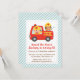Ljud larmet! Det är en brandkår lastbil födelsedagsfest! Den här ljusa färgaden och den söta inbjudan har ett rött lastbil som har en gult stege på sin sida, en söt brandpojke i förarsätet och en liten hund i brandkåren som förbereder en slang för att släcka elden. På motsatt sida finns en röd brandsläckare. Anpassa enkelt dina party-uppgifter till födelsedagspojken!