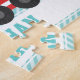 Ett pussel med ett rödbrunt lastbil som har vitt rand på sidan och en fällbar stege med slang. Blått linjer för bakgrundsbruk. Färg palett med rött, blått, grått och vitt. Anpassa med barnets namn.