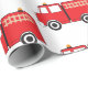 En söt illustration av ett rödbrand lastbil ungar leksak. Den beundransvärda röda eldmotorn rusar iväg för att släcka en brand. Perfekt för vem som helst och vilken ålder som helst. Ett favoritakut fordon.