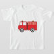 En söt illustration av ett rödbrand lastbil ungar leksak. Den beundransvärda röda eldmotorn rusar iväg för att släcka en brand. Perfekt för vem som helst och vilken ålder som helst. Ett favoritakut fordon.