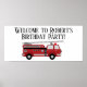 Red Firelångbils White Födelsedagsfest Banner Poster