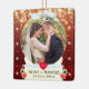 Den här enkla och minimalistiska julprydnaden har ditt utvalda foto i en vacker snö-glob med vackra snowy-julklappar med en gräddvit snö-glob som symboliserar ett glatt och välsignat giftermål för dig och din partner. För bästa resultat kan du skörd bilden till kvadratisk form innan du överför den till Zazzle. Lycklig Marry jul och Grattisar till er båda!