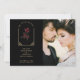 Our Red Floral Simulated Dome Arch Wedding Template in Faux Gold Photo Save the Date Card with Envelope is the perfect choice to announce your wedding in a romantic, elegant, sophisticated, and delightful way. With a stunning design featuring a simulated arch with a red flower inside, against a black background, this captivating template is sure to capture the attention of your guests.