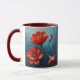 Njut av en kopp kaffe med den vackra blommigten mugg. Zenya Zenyaris konstverk som bildats i samarbete med AI - 2025. Röda blommor Joy Coffee Mugg design.