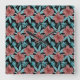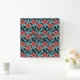 Red flowers tropical seamless pattern &blue leaves fyrkantig klocka