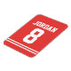 Red Football Jersey med Number Gift. Perfektens gåva till fotboll, fotboll, basket, hockey och många idrottsspelare. Klicka på knappen Anpassa om du vill anpassa designen genom att välja den bakgrund du vill ha och till och med lägga till en egen text.