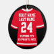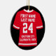 Red and white Replica sportjersey med din superstjärniga idrottsmans namn, nummer och team. Underbar för fotbollslag, fotbollsspelare eller hockeyidrottsman! Lägg till din text till den här personligen genom att plocka julen, Helgdag eller Automatisk prydnad för bilar. Med t-shirt-jersey-form, med blockvarians med ditt namn, nummer och personlig/team (eller annat meddelande)!