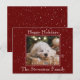 Anpassa det här budgetvykortet för helgdag med ett eget favoritfoto. Traditionell röd bakgrund. Vi har lagt till en övertäckning av snö. Lägg till ditt namn och önskad känsla. Perfekt för alla dina familjer och vänner.
